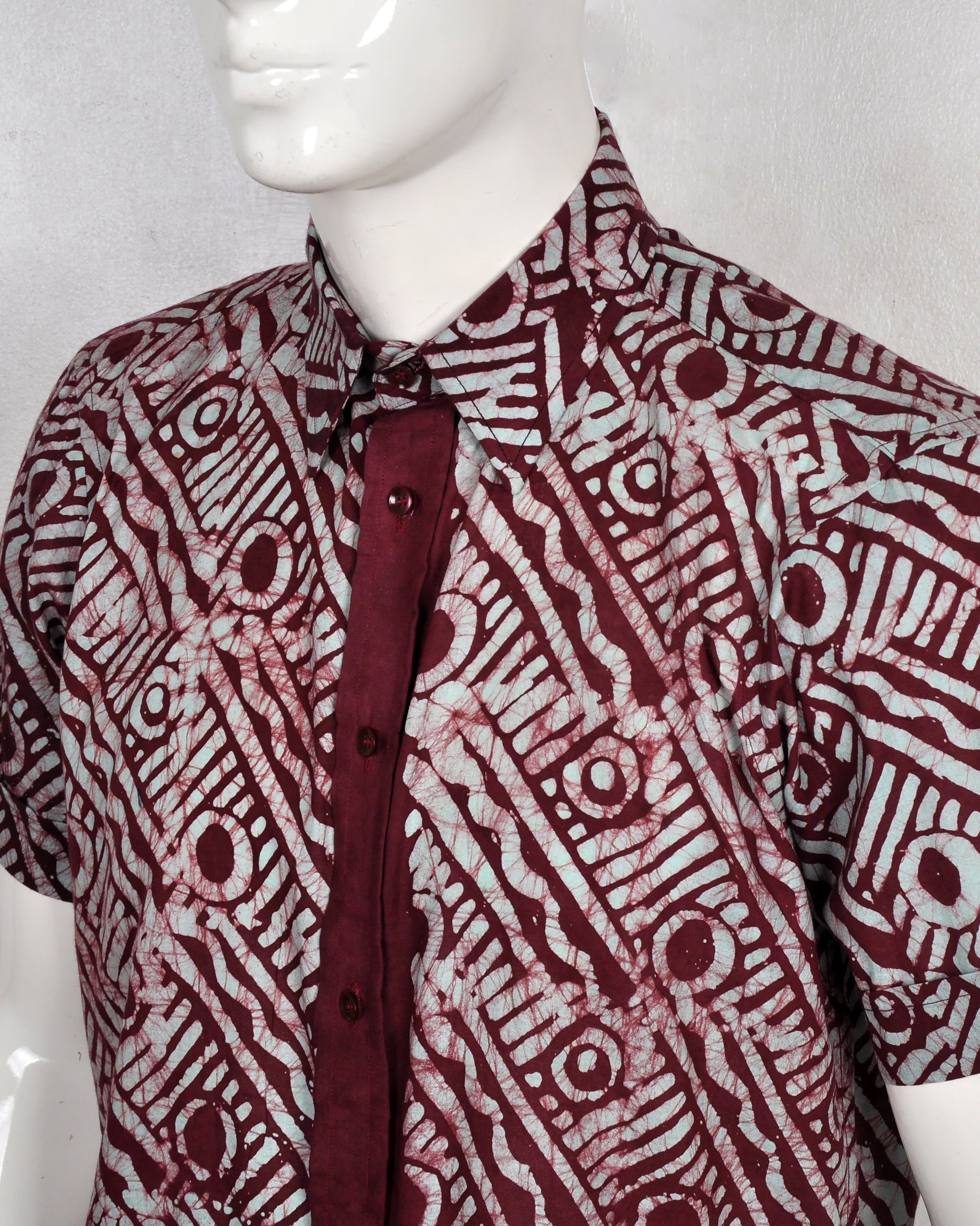 This shirt is made from 100% breathable cotton and carefully handmade, giving you all-day comfort with a bold, standout look. No two pieces are exactly the same—just like you.